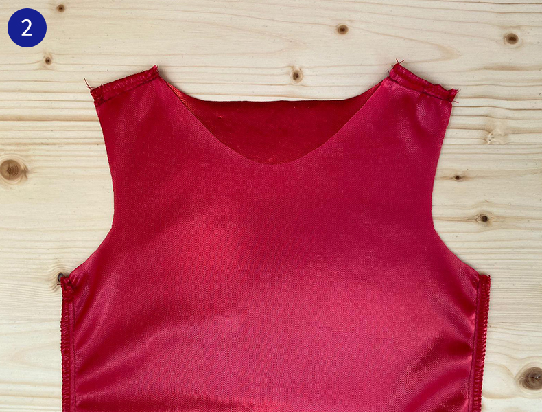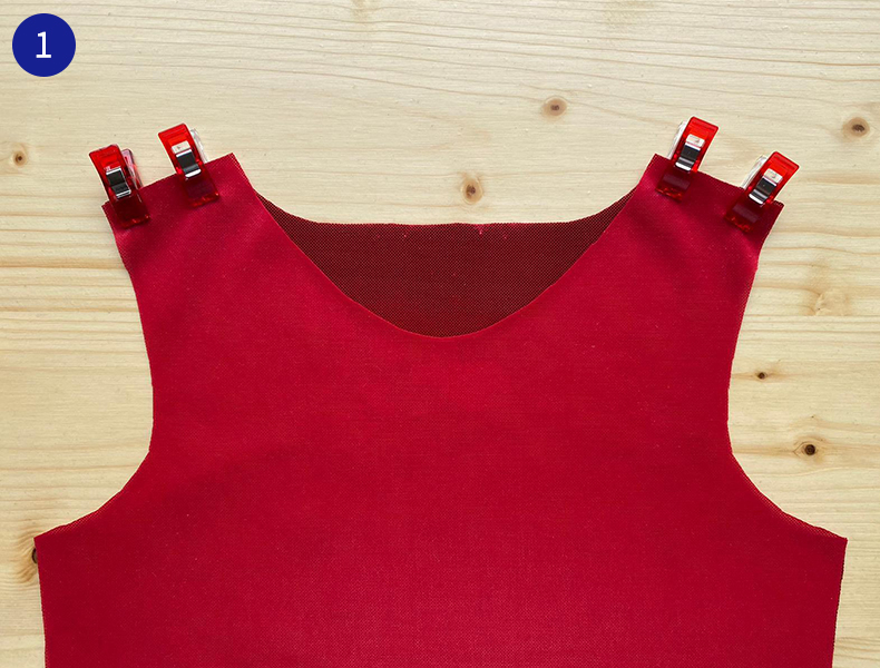 Endroit contre endroit, épinglez vos pièces dos et devant par le haut puis piquez à 1 cm du bord (photo 1). Surfilez ou faites un point zig-zag.