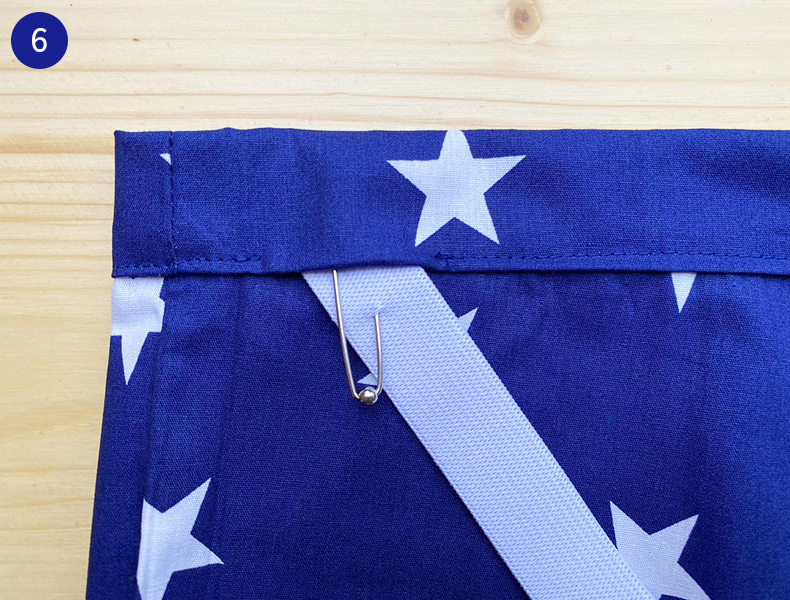 Passez l’élastique dans l’ouverture laissée à l’aide d’une épingle à nourrice.