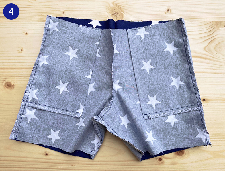 Ensuite, assemblez les côtés du short (endroit contre endroit) puis surjetez ou faites un point zig zag. Faites de même pour les entrejambes.