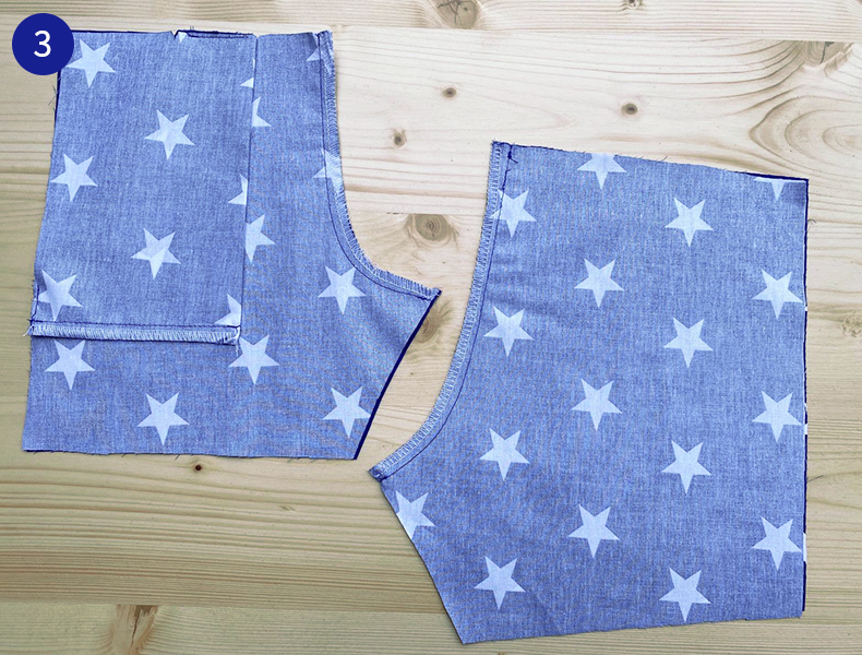 Assemblez maintenant les fourches devant (endroit contre endroit) puis surjetez ou faites un point zig zag. Procédez de la même façon pour les fourches dos.