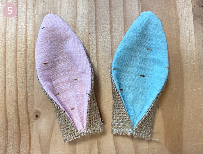 Faites de même avec les anses (endroit contre endroit) à 0,5 cm des oreilles.