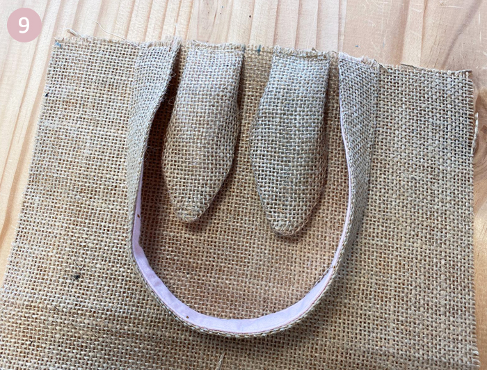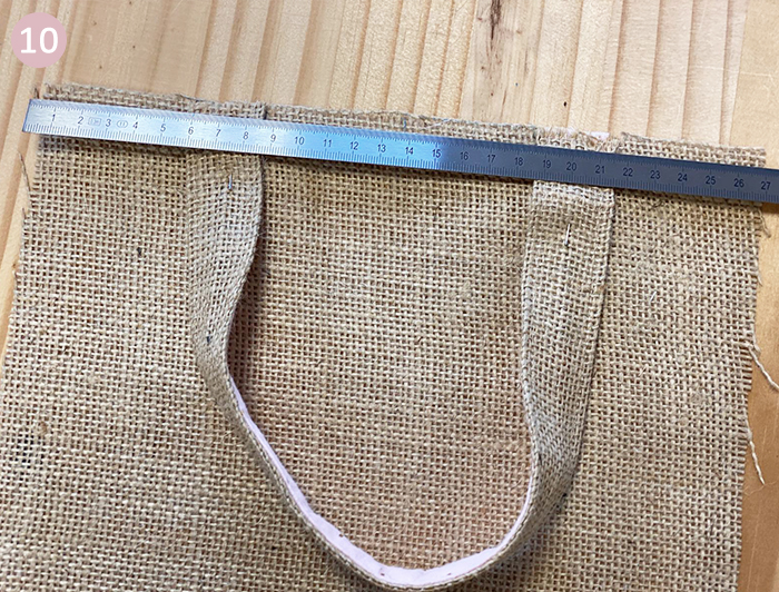 Pour la doublure et la toile de jute, rabattez sur l’envers les deux côtés des anses vers le milieu. Repassez pour maintenir.