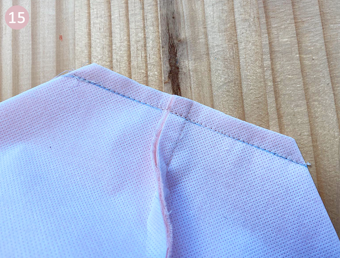 Pour l’autre anse, procédez de même mais en épinglant et piquant à 5 cm du repère de milieu.