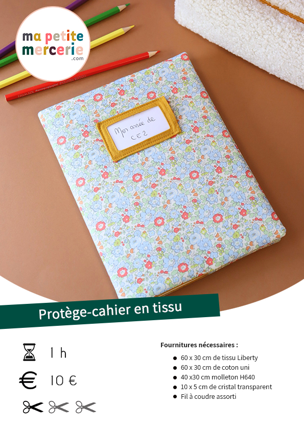 >> Avec la laize de chaque tissu, vous pourrez réaliser 2 protège-cahiers.