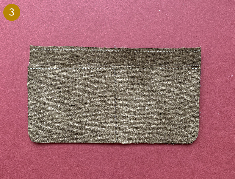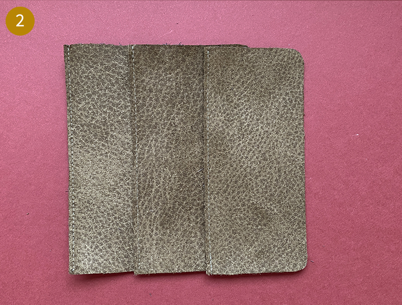 Pour de jolies finitions, on vous suggère de réaliser des piqûres décoratives à 2 ou 3 mm des bords droits des grands côtés et du petit côté.