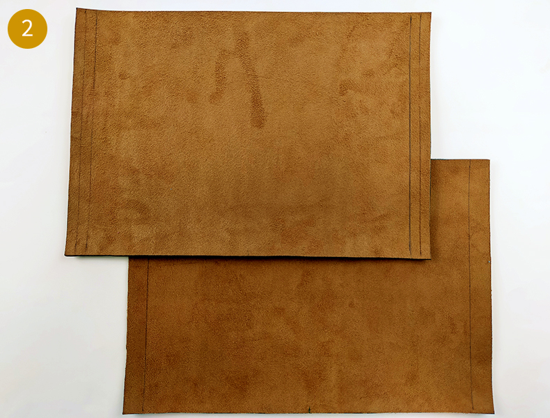 - Sur l’autre rectangle et des deux côtés, tracez une ligne verticale et parallèle à la hauteur du sac et à 2 cm du bord.
