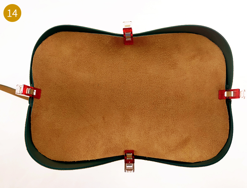 La réalisation de ce sac seau, n’est pas particulièrement technique, elle demande en tout de même de prendre quelques précautions pour la couture du simili cuir :