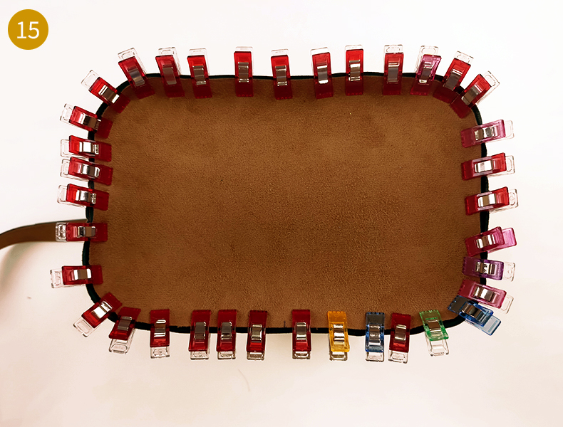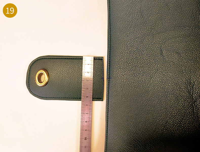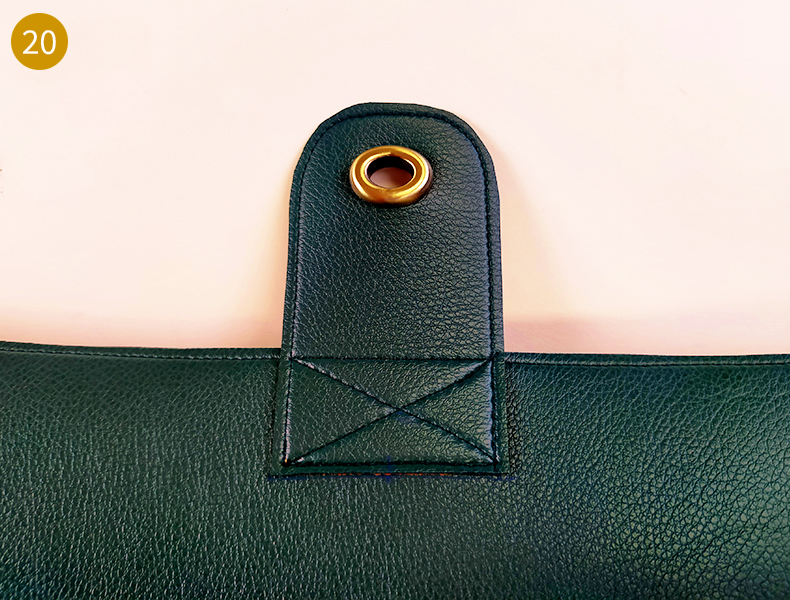 - Optionnel : pour le rabat du fermoir, vous pouvez, si vous le souhaitez, réaliser une surpiqûre à 2 mm du bord tout autour (sauf au niveau du petit côté droit, opposé à l’arrondi).
