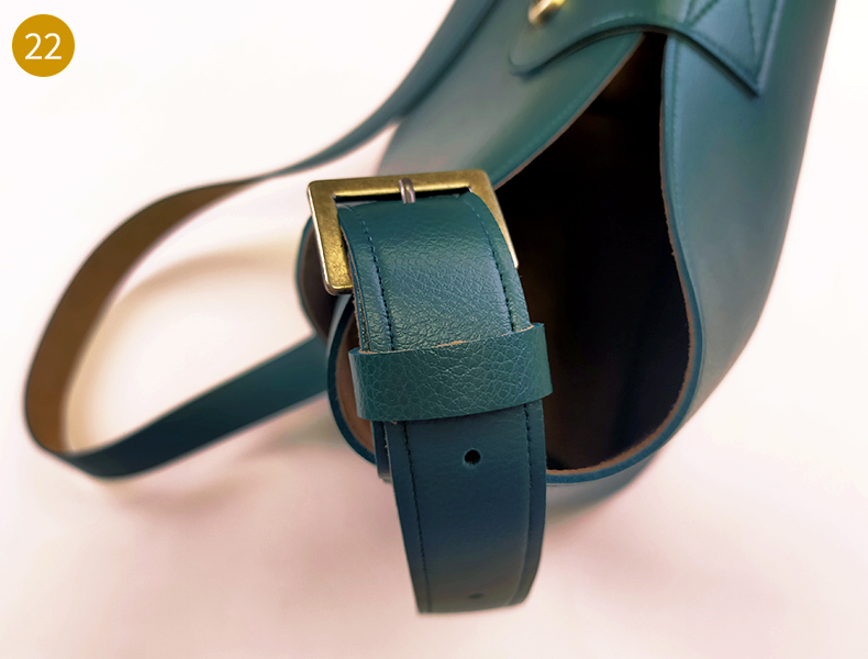 Et voilà, vous pouvez à présent régler la lanière de votre sac et passer l’extrémité dans le passant. Votre sac est terminé !