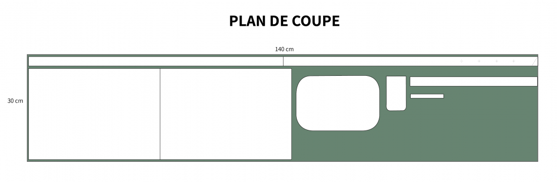 Découpez vos pièces selon les gabarits fournis selon le plan de coupe suivant :