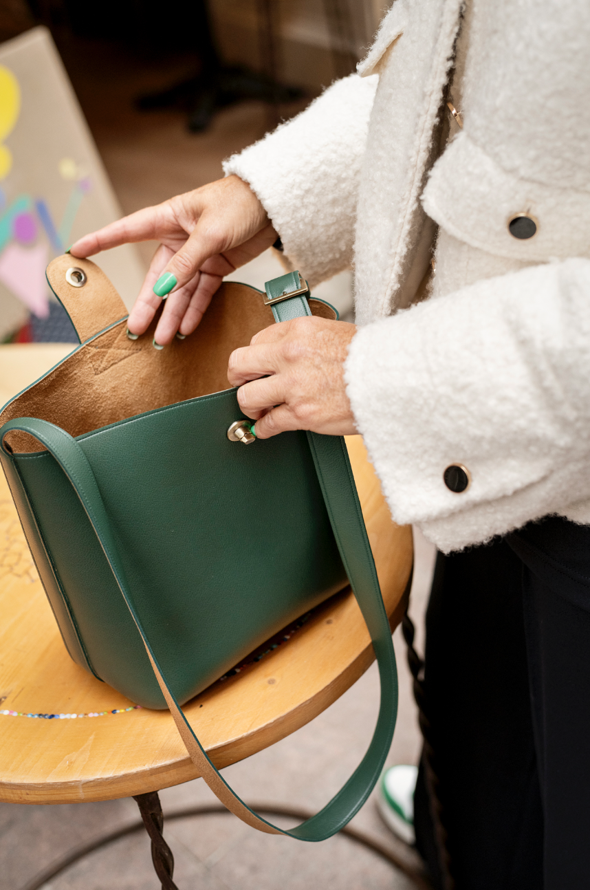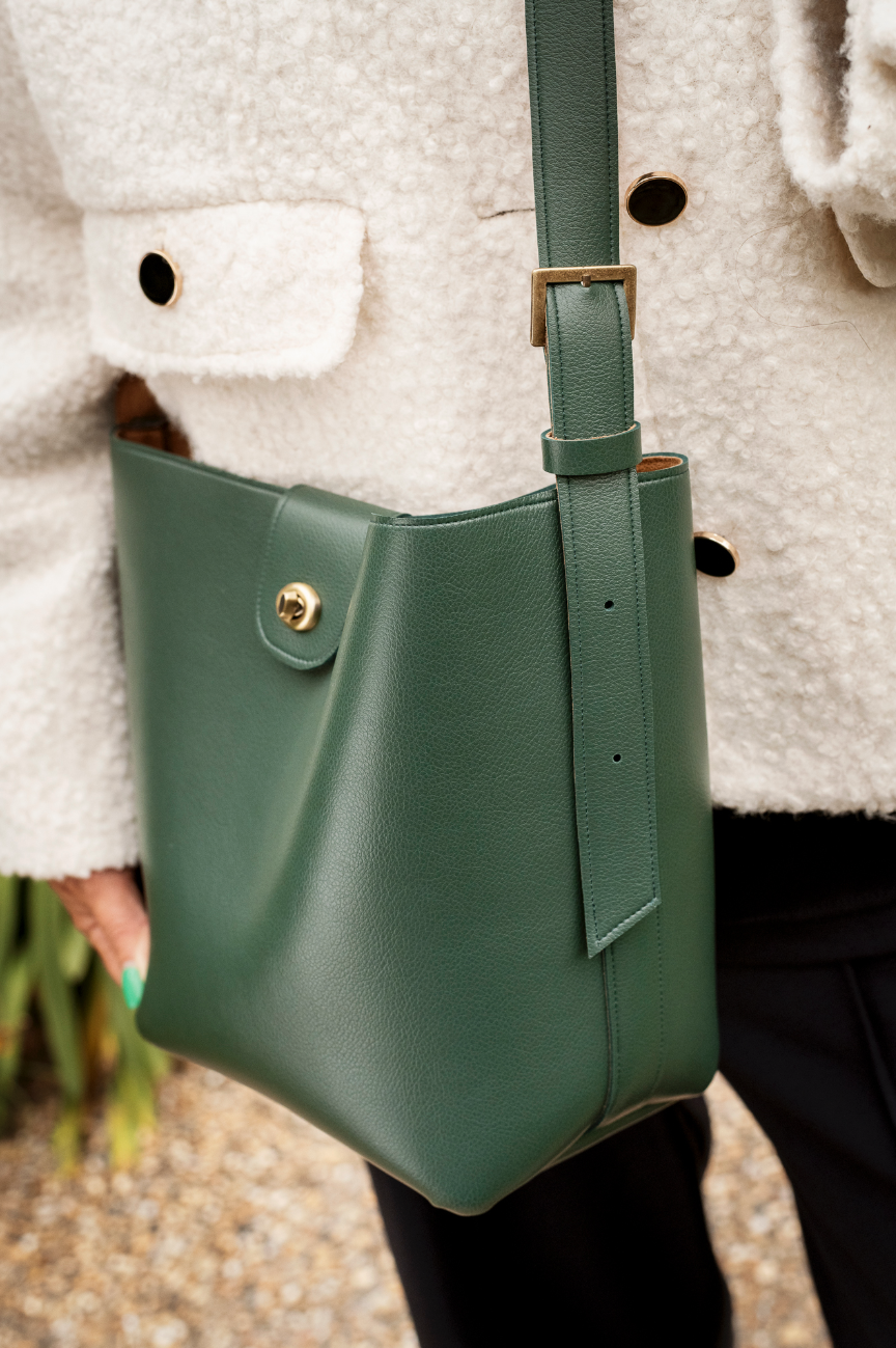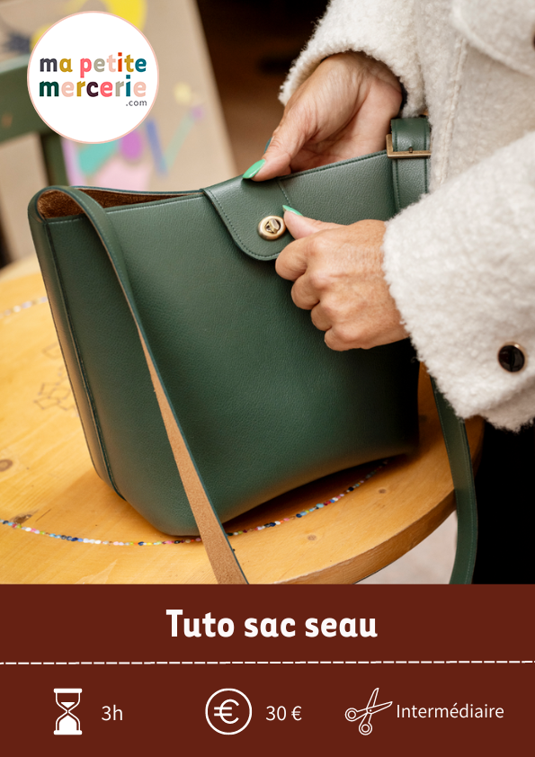 Nous vous proposons un kit couture complet pour réaliser ce sac seau, avec ce simili cuir haute qualité, en 2 coloris : vert foncé ou camel, au prix canon de 29,90 € :