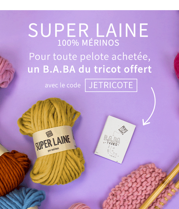Psst, c’est le moment de vous lancer. Commandez vos pelotes de laines et aiguilles aujourd’hui. Jusqu’au 31 janvier prochain, pour toute pelote achetée, vous recevrez le memo pratique par excellence : le B.A BA du tricot, en entrant le code JETRICOTE au moment de valider votre commande.