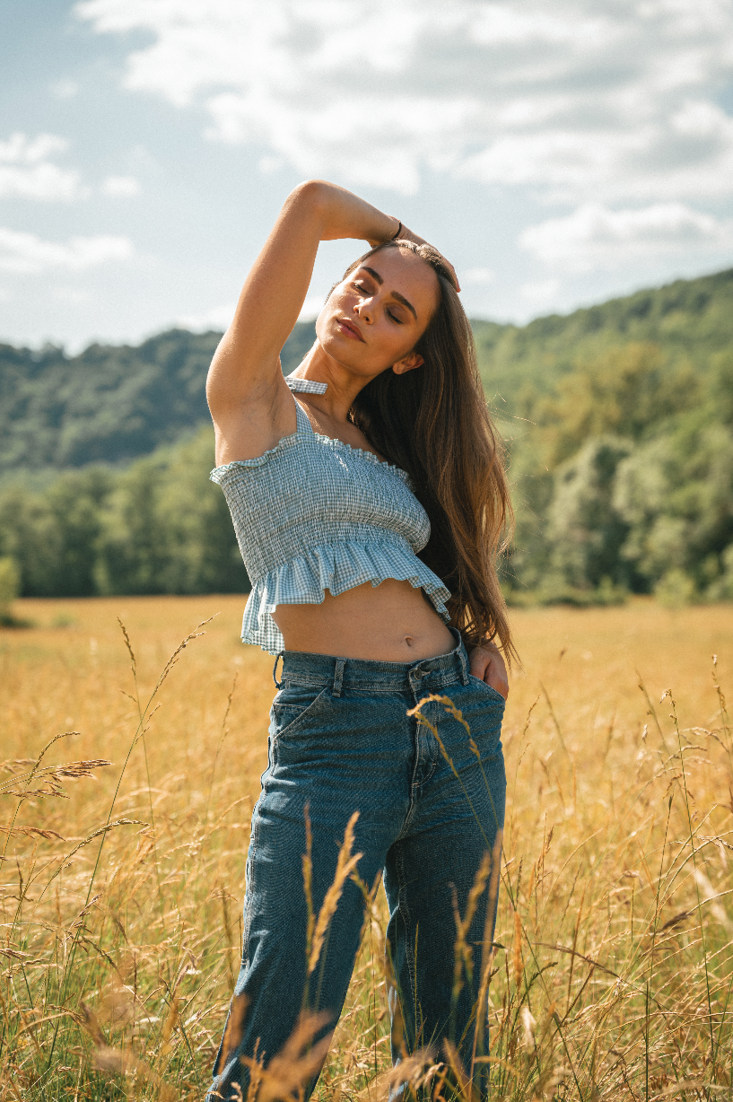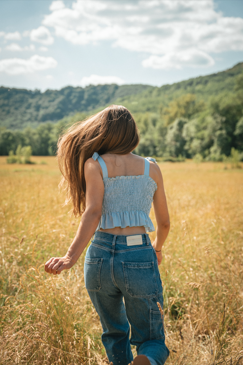 Pour ce tuto top à bretelles, nous avons opté pour un crop top à smocks très tendance. Les smocks, ce sont des fronces qui s’étirent et qui permettent au haut de s’adapter parfaitement à votre morphologie ! Pour un rendu encore plus mignon, nous avons sélectionné un tissu en popeline de coton vichy souple avec un joli tombé.