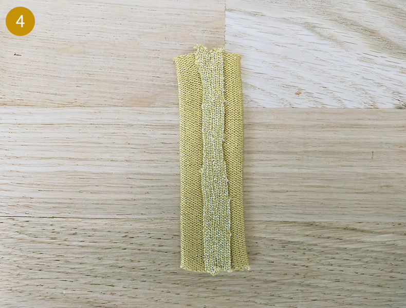 Retournez le turban sur l’envers puis faites sortir la languette par le trou (couture vers vous).