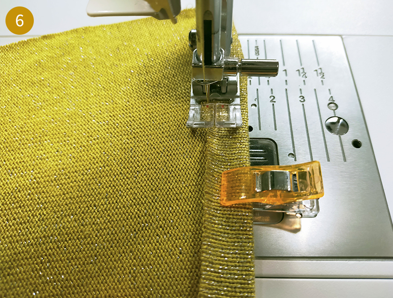 Sur le bas du turban, réalisez un ourlet simple vers l’envers de 1,5 cm. Maintenez avec des pinces. Piquez au point zigzag (pas trop large) à 2 mm du bord brut.